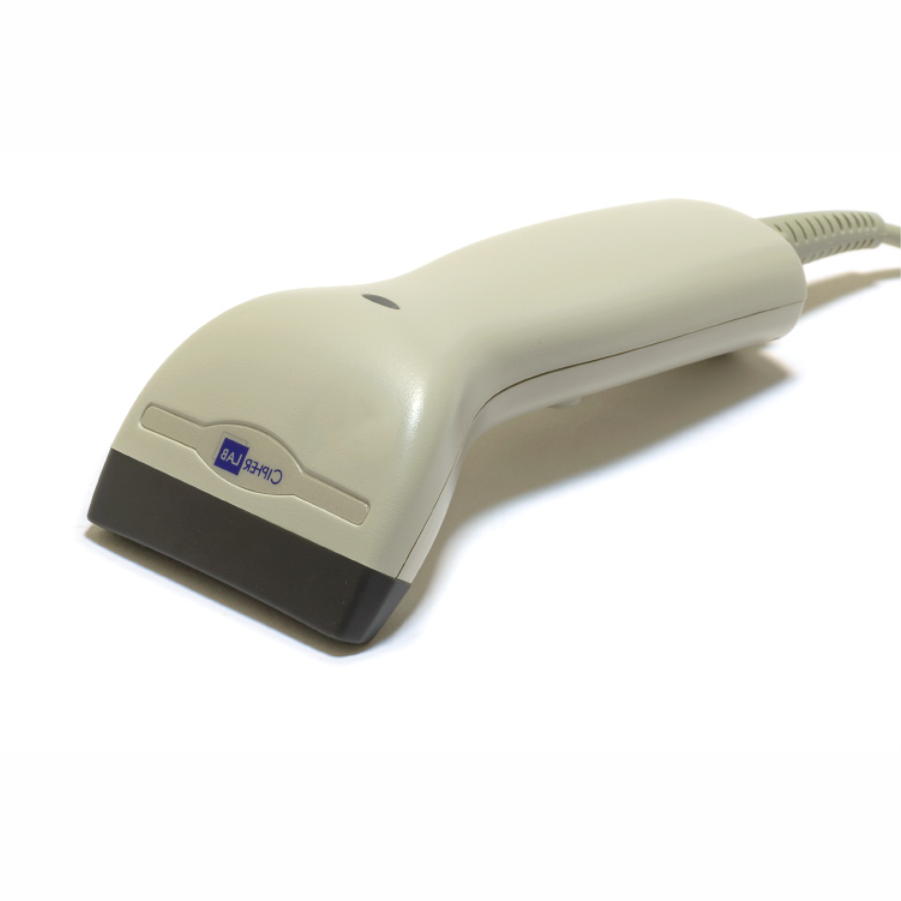 CipherLab 1000A-KW разновидность имиджевого сканера привлекает к себе внимание соотношение цена/производительность. Эта бюджетная модель светодиодного сканера из линейки CipherLab необходима при формировании оборудования магазина. Она проста в использование и не требует специальных навыков. Для активации сканирования на нём расположена удобная кнопка, которая позволяет регулировать правильность считывания штрих-кода. Это опция удобна при сканировании товара, на котором расположены сразу несколько штрих-кодов вблизи друг к другу. Оператор подносит в плотную сканер и производит активацию нажатием кнопки. Ширина считывания может достигать 67 мм. Имея хорошее разрешение и чувствительность, имейджер может производить сканирование даже поврежденных штрих-кодов. Скорость считывания штрих-кода достигает 100 скан/сек. Отсутствие движущихся механических деталей, делает этот аппарат надежным в использовании.